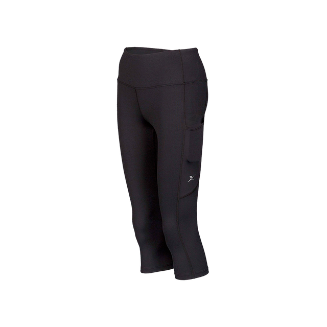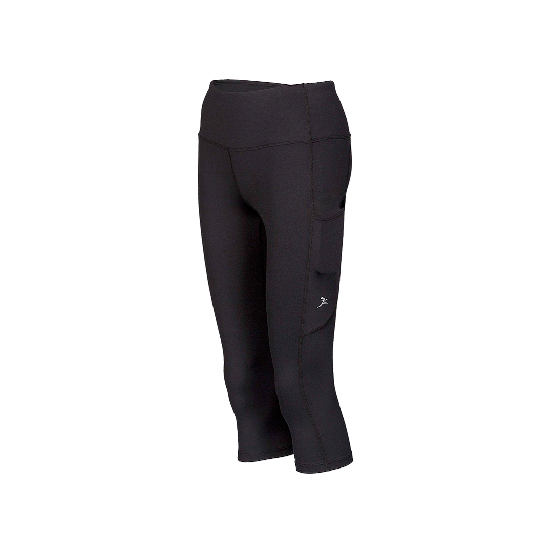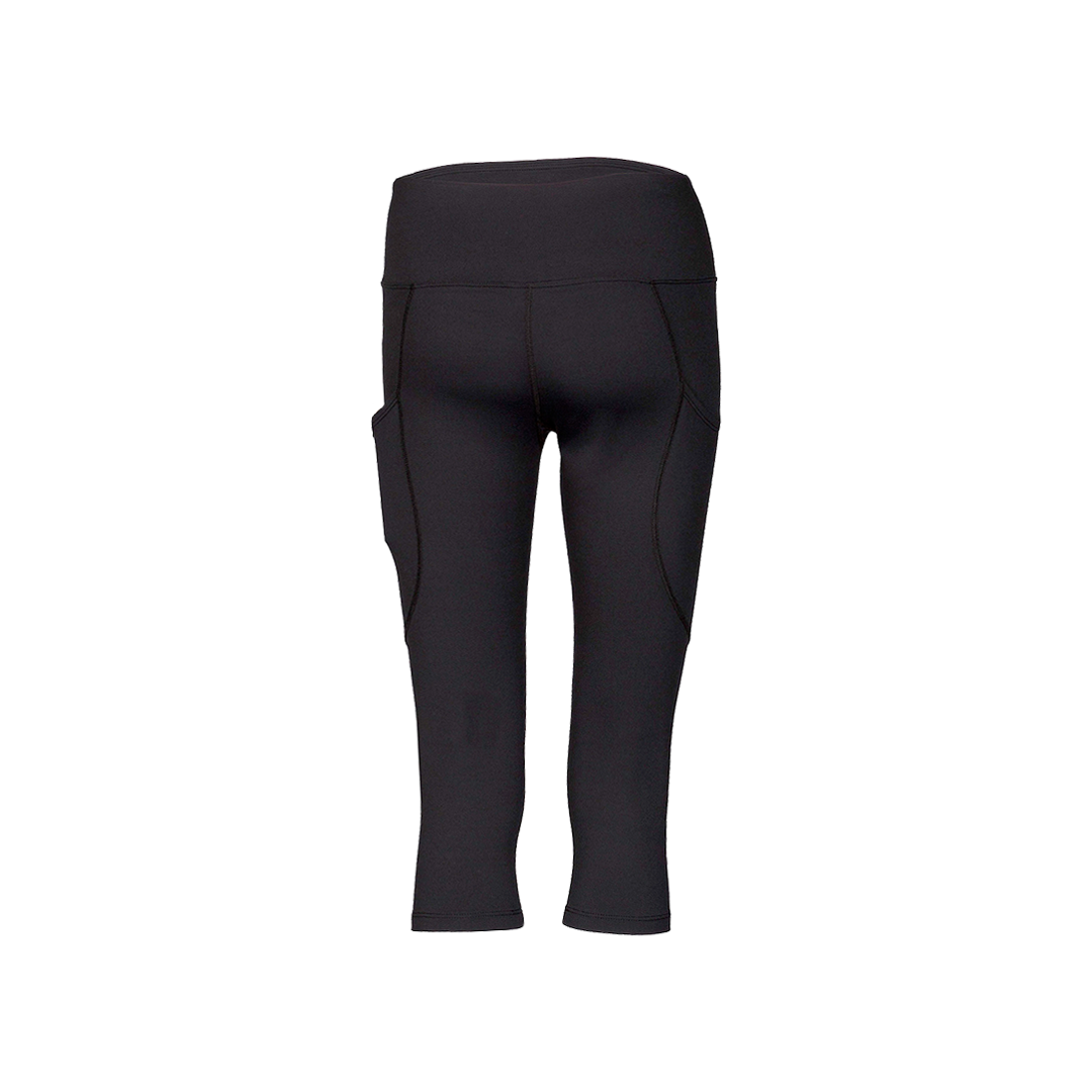 Engineered to keep you focused on your fitness journey, this comfortable capri features a wide waistband and easy access pockets for convenience. Made From Dry/Tech Lycra a water and sweat resistant fabric making this product perfect for any workout or around the boat house.