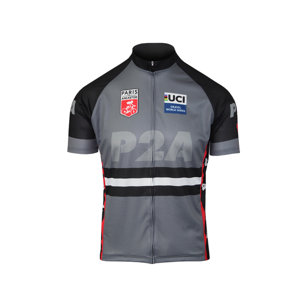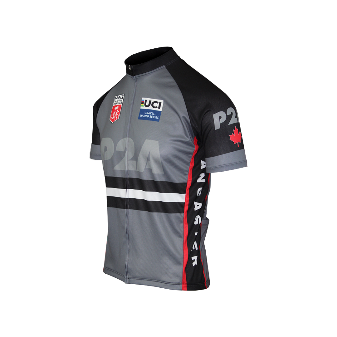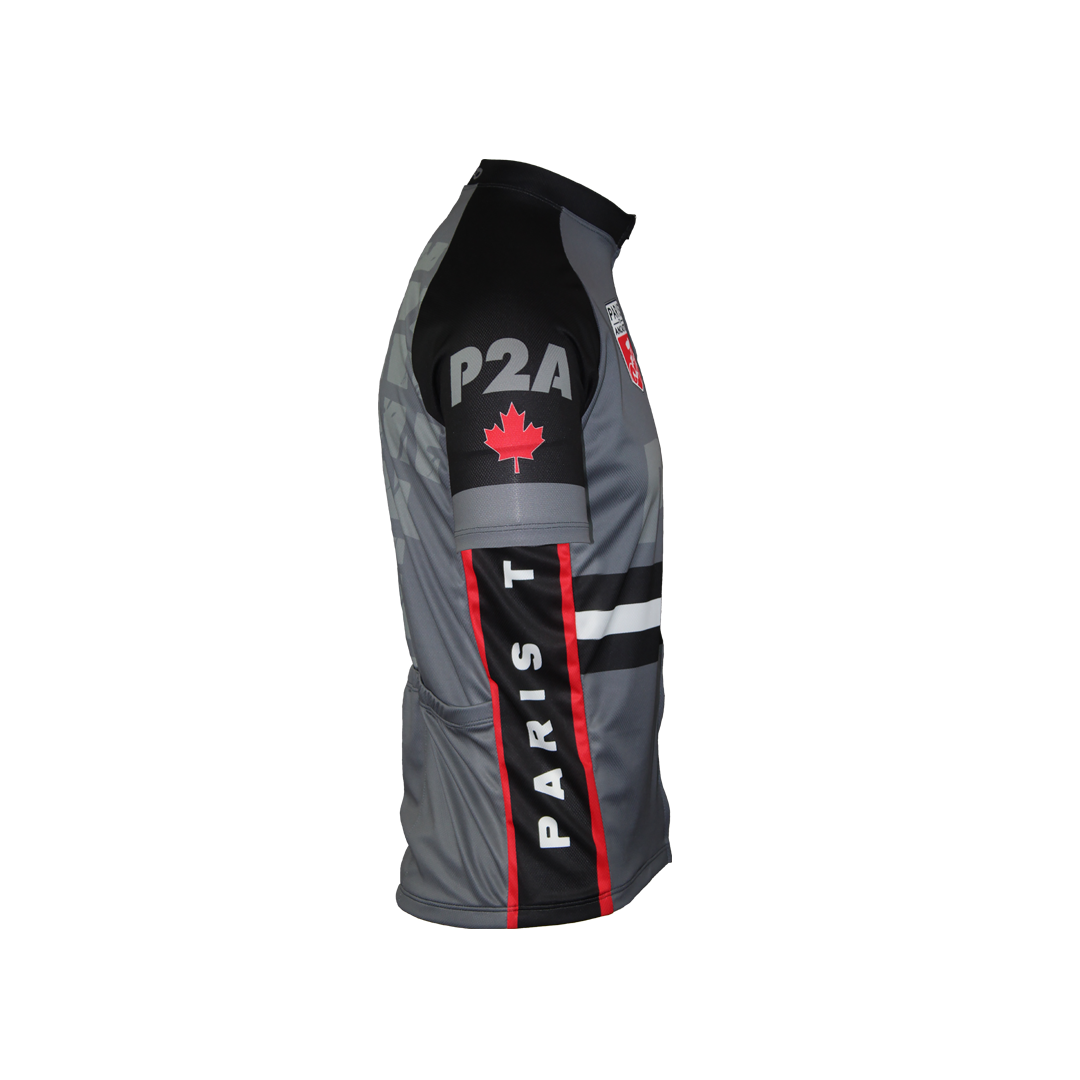 A unique addition to your cycling jersey collection! Show your race pride with this lightweight and moisture-wicking cycling jersey. Features original P2A logo and art on the front and back.
