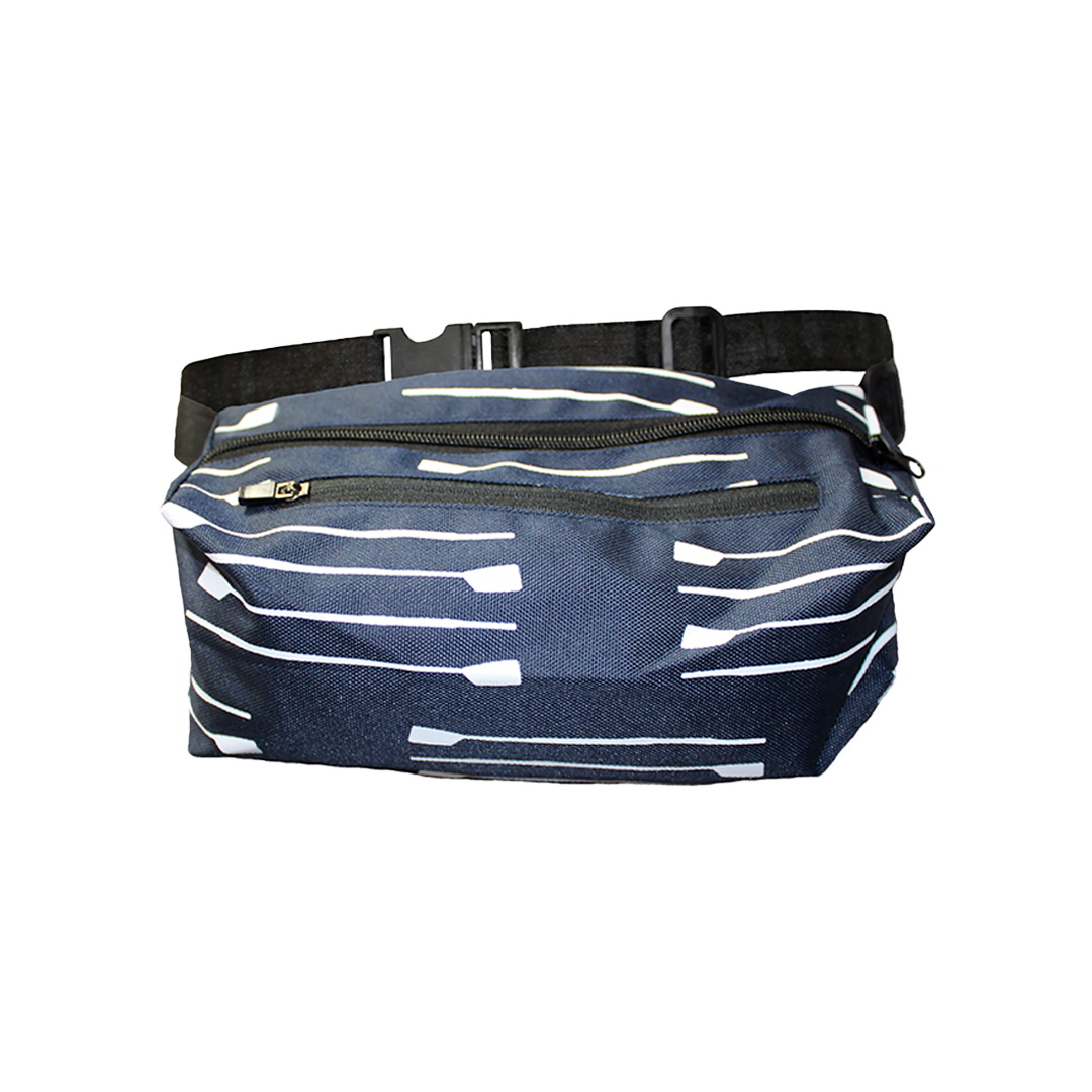 A convenient way to carry around your items on those busy regatta days and practices. This fanny pack features a rowing oar design for style and an adjustable waistband for comfort!
